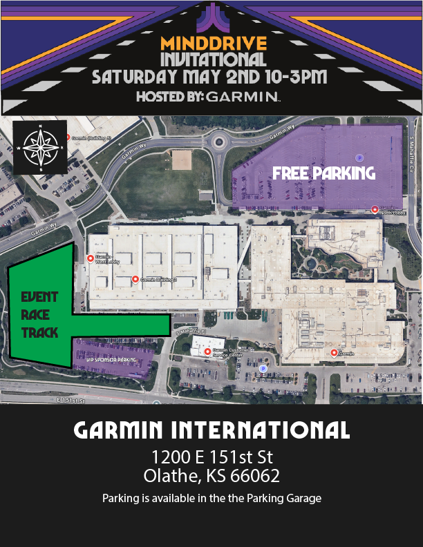 - Parking available in the Garmin Parking Garage